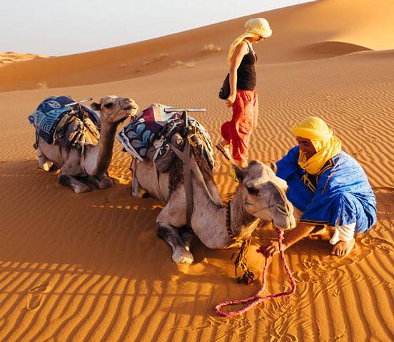 Get picked up at the Marrakech airport on Day 1. Explore the city on a guided tour on Day 2. Depart Marrakech on Day 3 for a scenic drive through the Atlas Mountains to Zagora, stopping at world-famous Ait Benhaddou. From Zagora ride into the dunes on a camel for a night at a Berber camp under the stars. Watch the sunrise on Day 4 and transfer back to Marrakech. End your trip with an accommodation check-out on Day 5